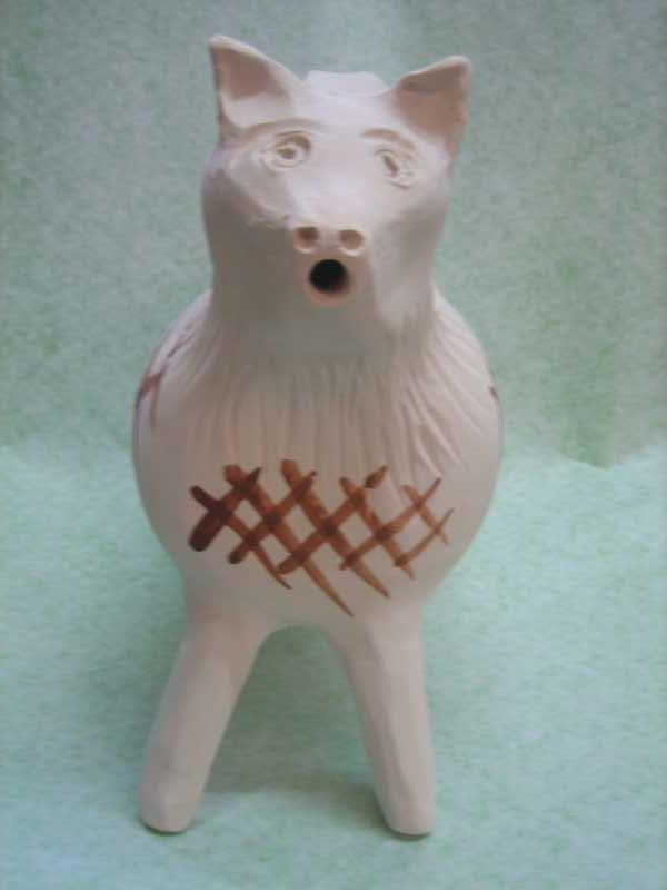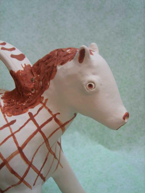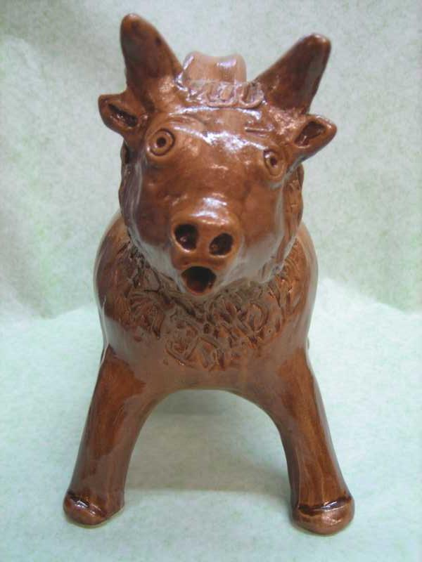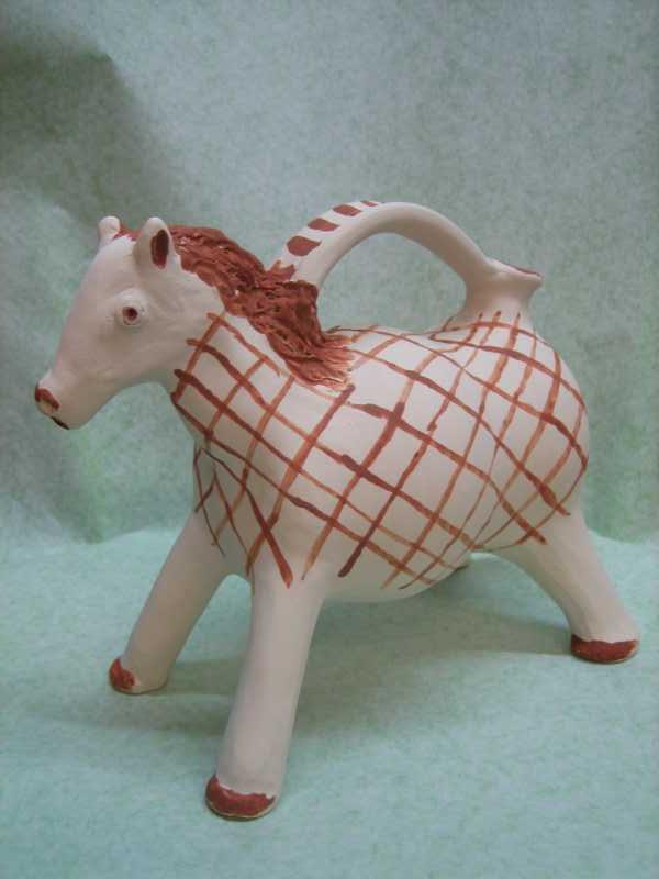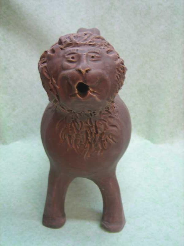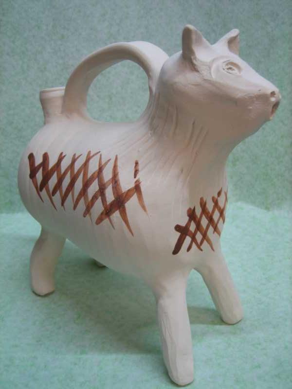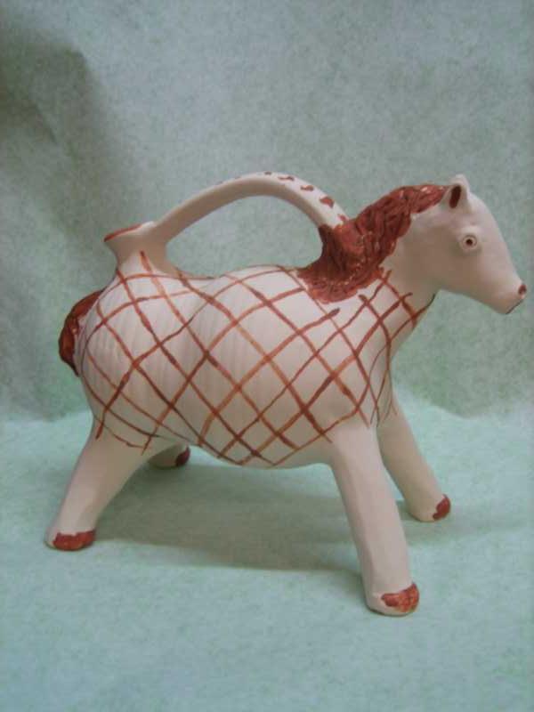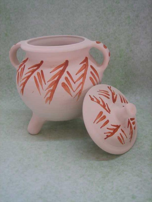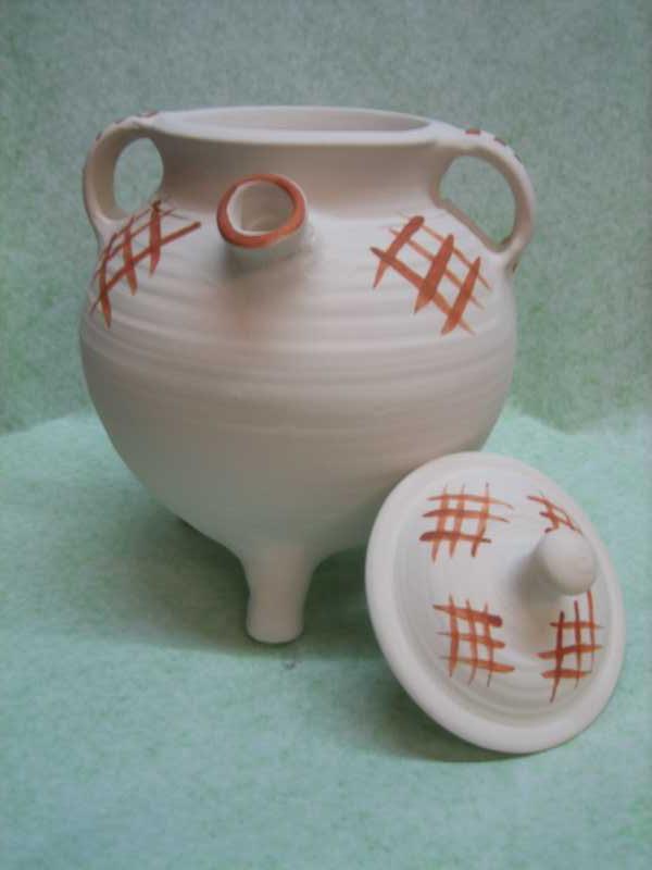 Grapen mit Deckel , Ausgusstülle und Engobebemalung