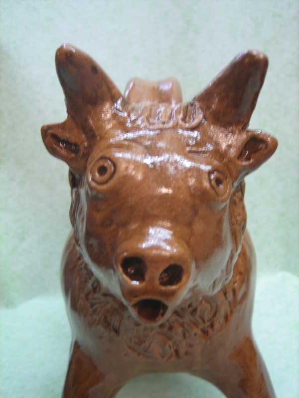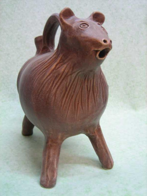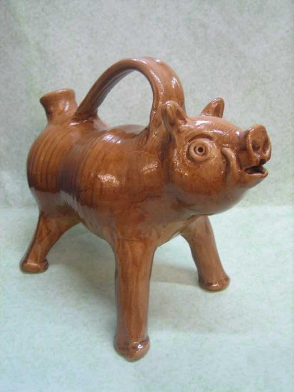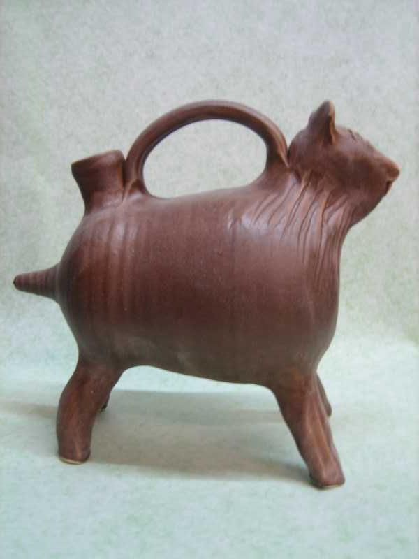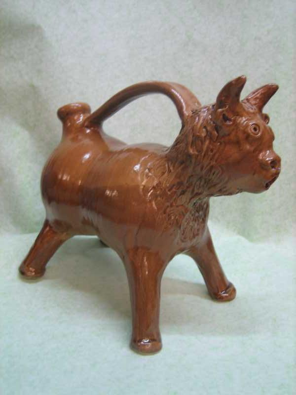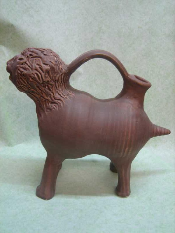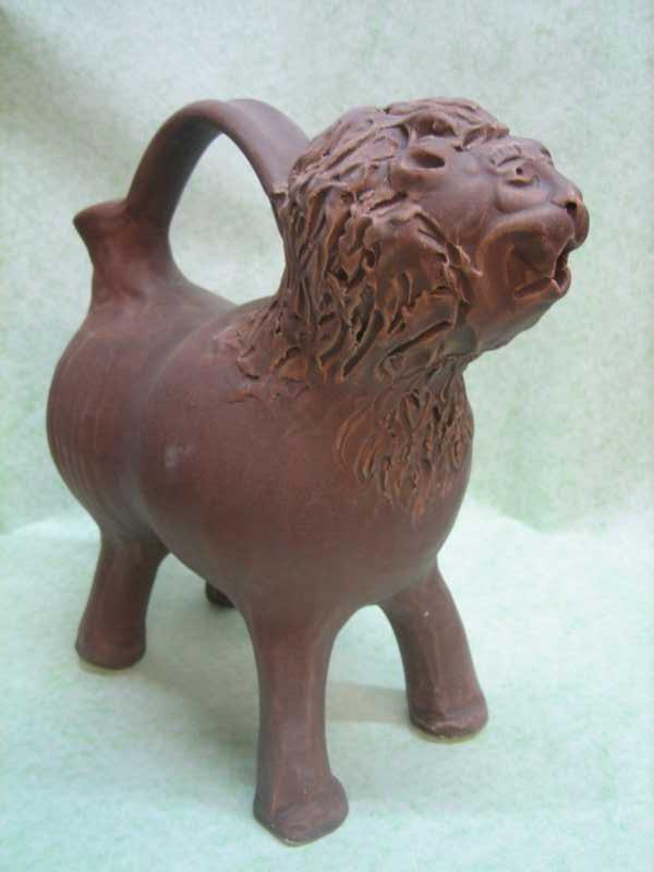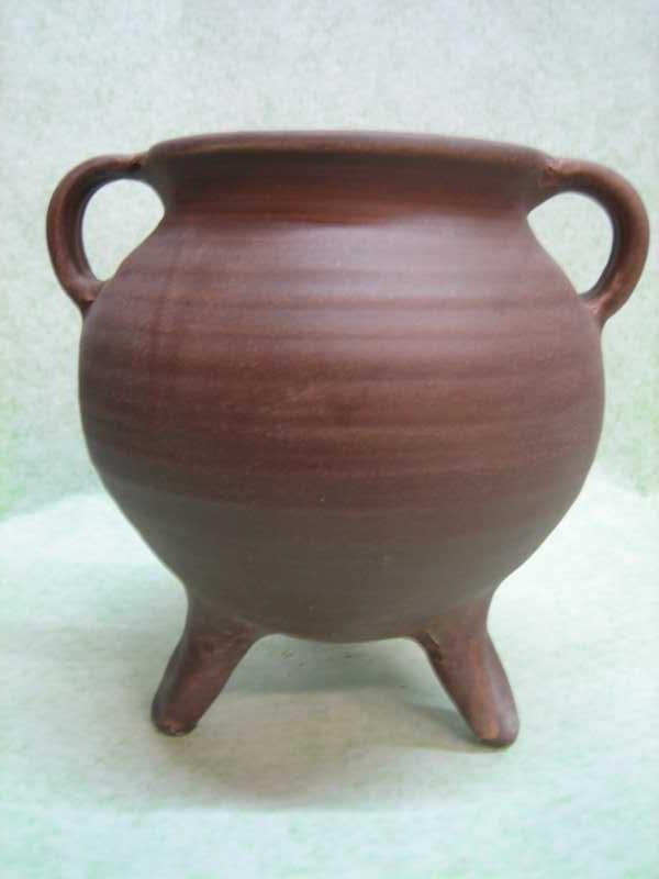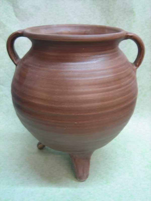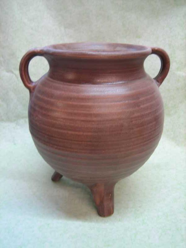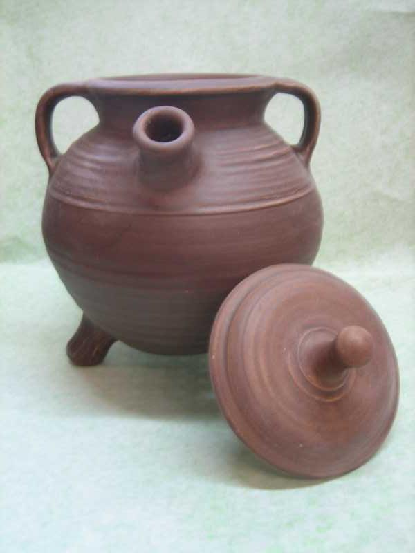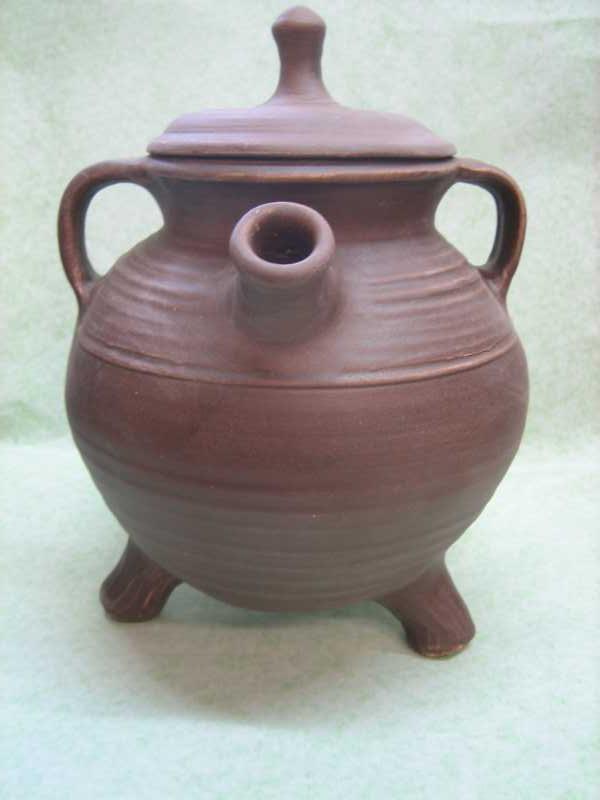 Grapen mit Deckel , Ausgusstülle und mattbrauner Engobe
