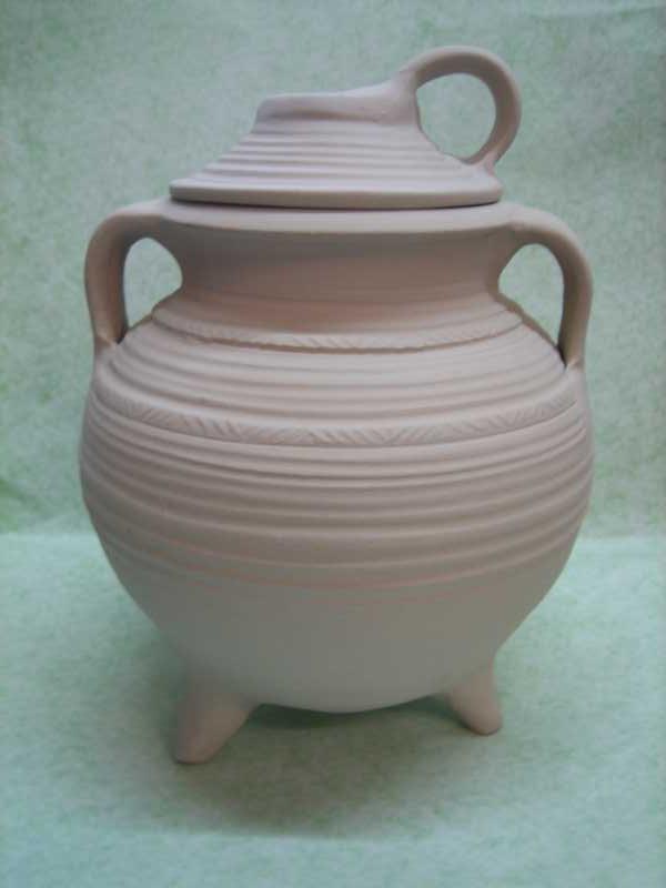 Grapen mit Deckel ,2 Rollstempeln unglasiert aus gräulichen Ton